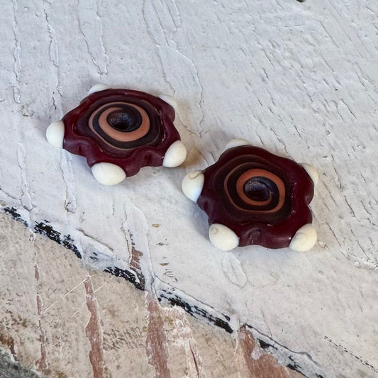 DISCS - Matte Brown and Coral Flowers